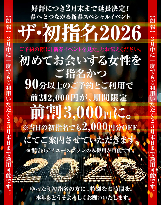 - ご優待チケットを同一女性で利用できる上限回数は(通常指名1回+本指名1回)最大2回までとさせていただきます。
